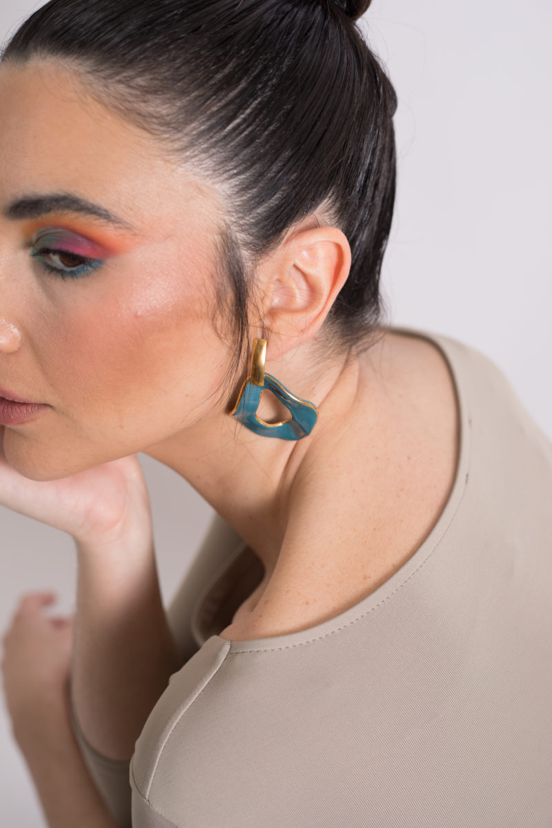 Botón de acero con baño de oro de 18k. Cerámica esmaltada con filo pintados en lustre de oro. Disponible en varios colores: BLANCO-ORO, PIEDRA-ORO, AZUL PETROLEO-ORO Ahora también: NARANJA-ORO, TURQUESA-ORO, MOTEADO VERDE, ROSA BEBÉ-ORO