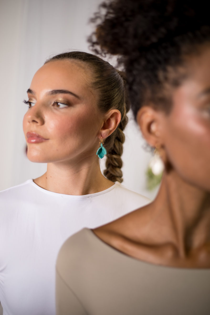 Flor de ceramica esmaltada. Gancho de plata con baño de oro de 2 micras