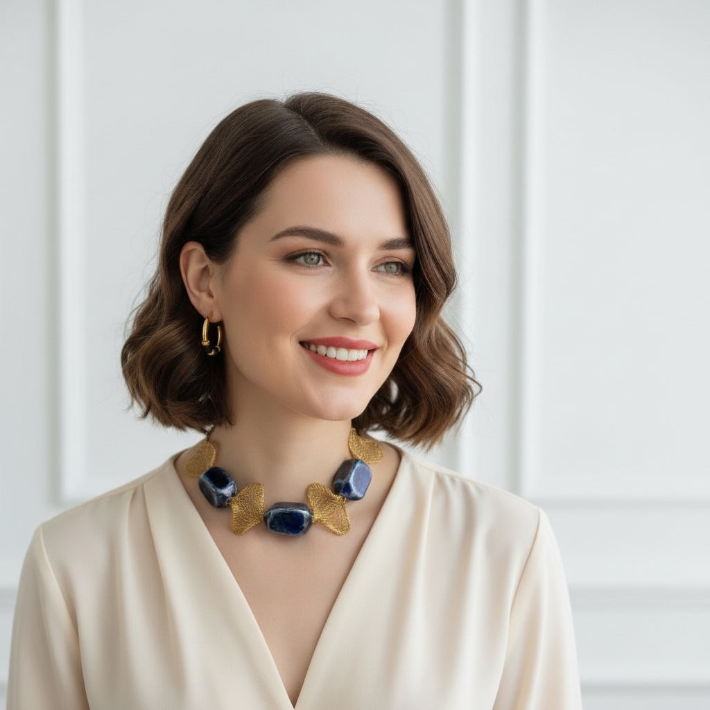 Gargantilla de malla de titanio con cierre de mosquetón de acero inoxidable con baño de oro de 18k.