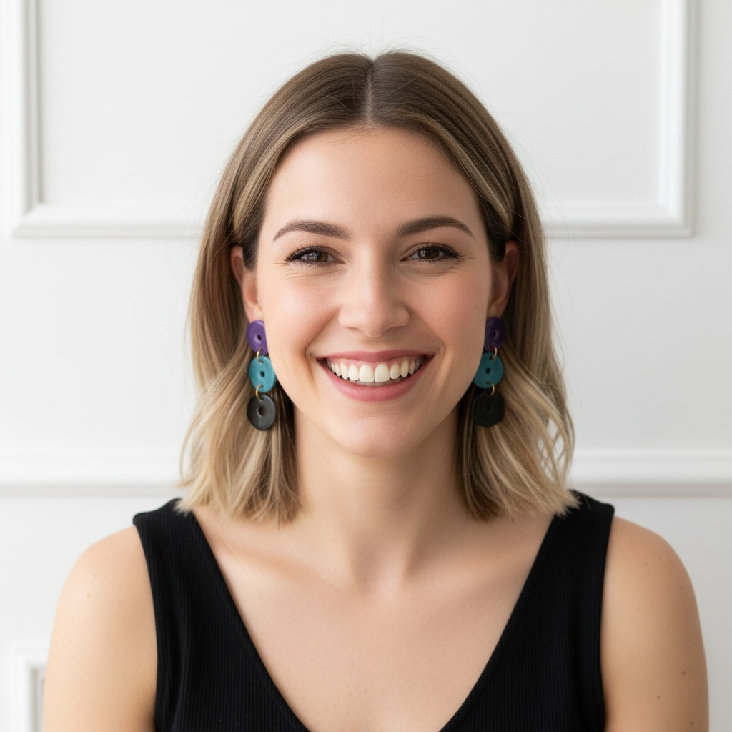 Pendiente de cerámica esmaltada compuesto de tres piezas.